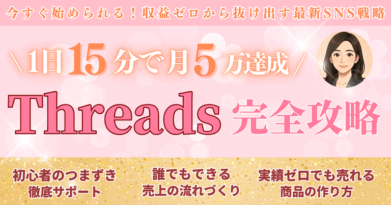 【 1日15分で月5万達成!Threads完全攻略】収益ゼロから抜け出す最新SNS戦略 実績ゼロでも売れる商品の作り方