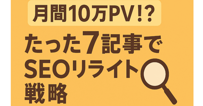 たった7記事で月間10万PV!?副業初心者でも実践できるSEOリライト戦略