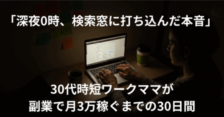 「副業なんて、私には無理」が「月3万の入口」に変わった夜 ── 30代ワーママが0時に検索した30の本音と、たった1つの突破口