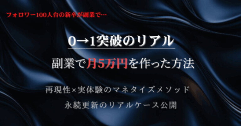 【完全保存版】フォロワー100人台の新卒が“副業開始1ヶ月でマネタイズ→毎月5万円超”を達成した0→1完全マニュアル