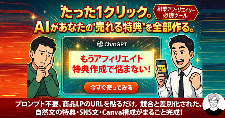【7/17までリリースセール中】『アフィリエイト特典メーカーGPTS』差別化できる特典/自然なSNS文/Canva構成まで、すべてAIが自動で出力。しかもURL入力だけ。 (続きを読む) 【楽天総合1位★10%OFFクー … 続きを読む