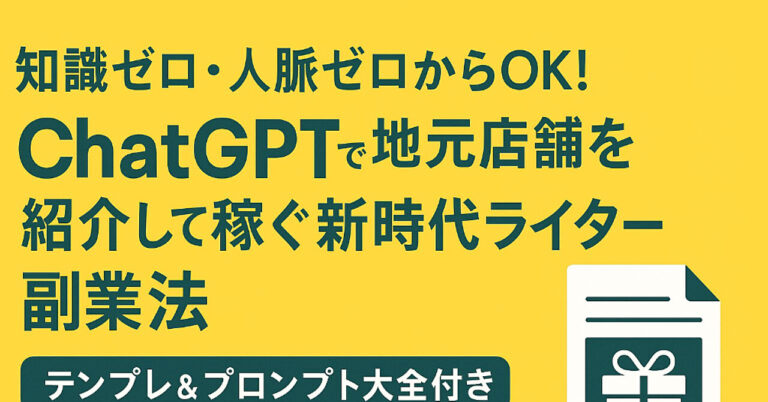 「知識ゼロ・人脈ゼロからOK!」 ~ChatGPTで地元店舗を紹介して稼ぐ新時代ライター副業法~