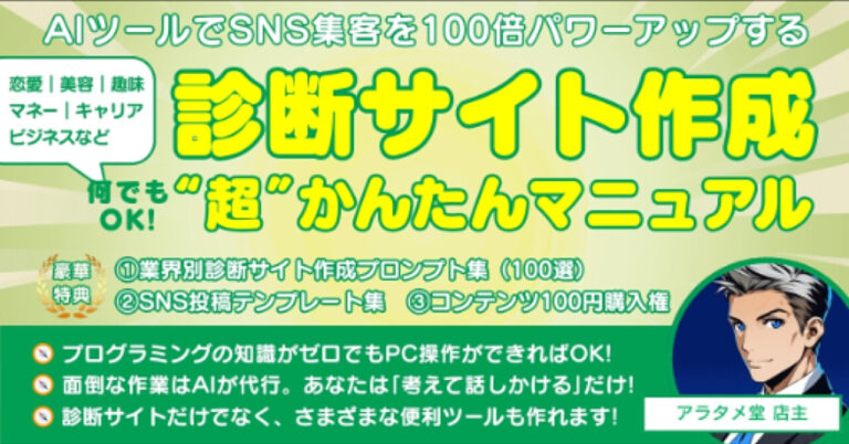 SNS集客を100倍パワーアップ 診断サイト作成“超”かんたんマニュアル 恋愛|美容|マネー|キャリア|趣味|学習…何でもOK!